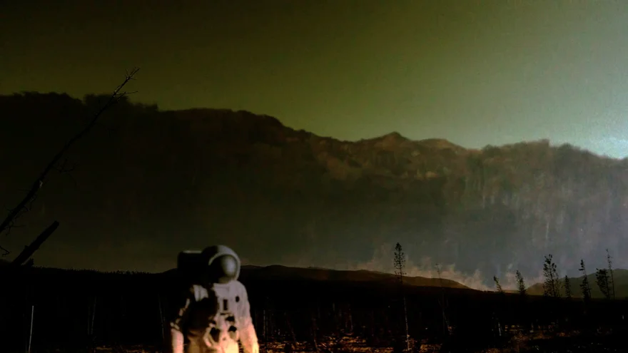 Temporal Changes in the Landscape is an exhibition inspired by the great Rockies from Banff to Colorado. The astronaut travels the planet observing the environment and ecologies from the future to the present without belonging to a place or time as we know it - but moves in a suspended temporality.